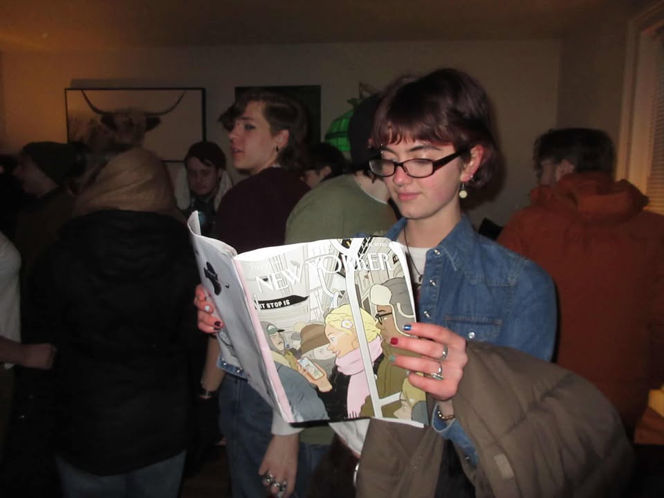 reading the new yorker at a party